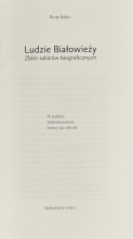 W książce znajdują się szkice biograficzne poświęcone 108 osobom w różny sposób związanych z Białowieżą. Są to: